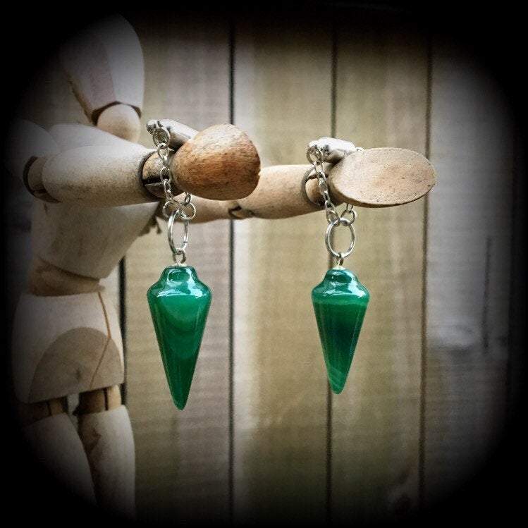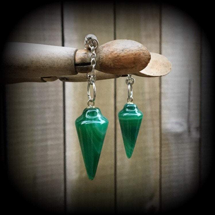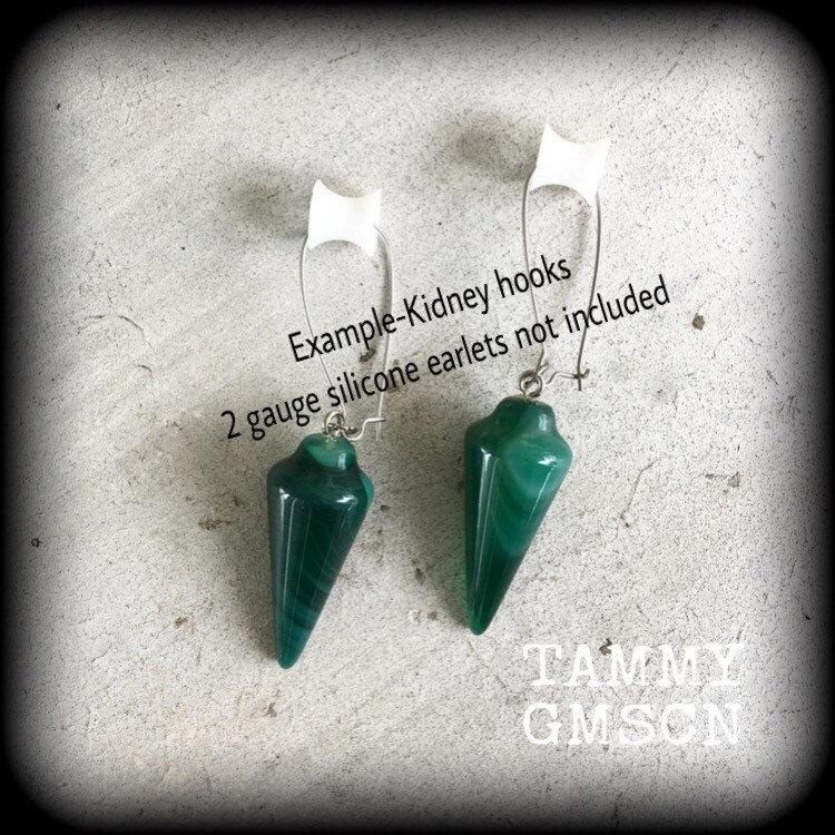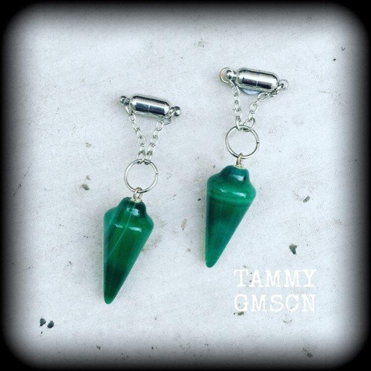 0 gauge ear weights,  8mm weights, Green onyx, Ear hangers, Magnetic clasp, Tunnel dangles, Plug dangles, Quartz weights, Hanging gauges