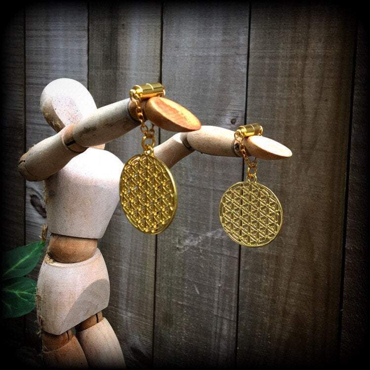 These are nice and lightweight, weighing just a few grams each, and measuring just 6cms, fastening with a magnetic boho gold clasp to be worn through silicone earlets in stretched lobes 8mm/ 0 gauge and larger.
