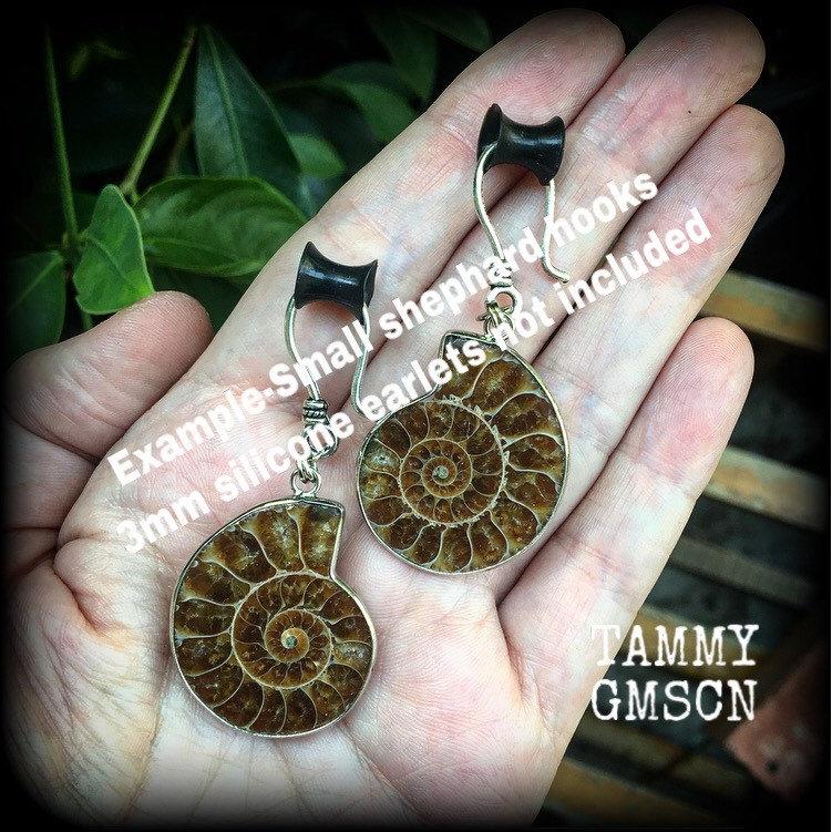 00 gauge 0 gauge 2 gauge ear weights Ammonite 6mm ear hangers Fossil ear weights Plug earrings Gauged earrings Plug dangles Hanging gauges