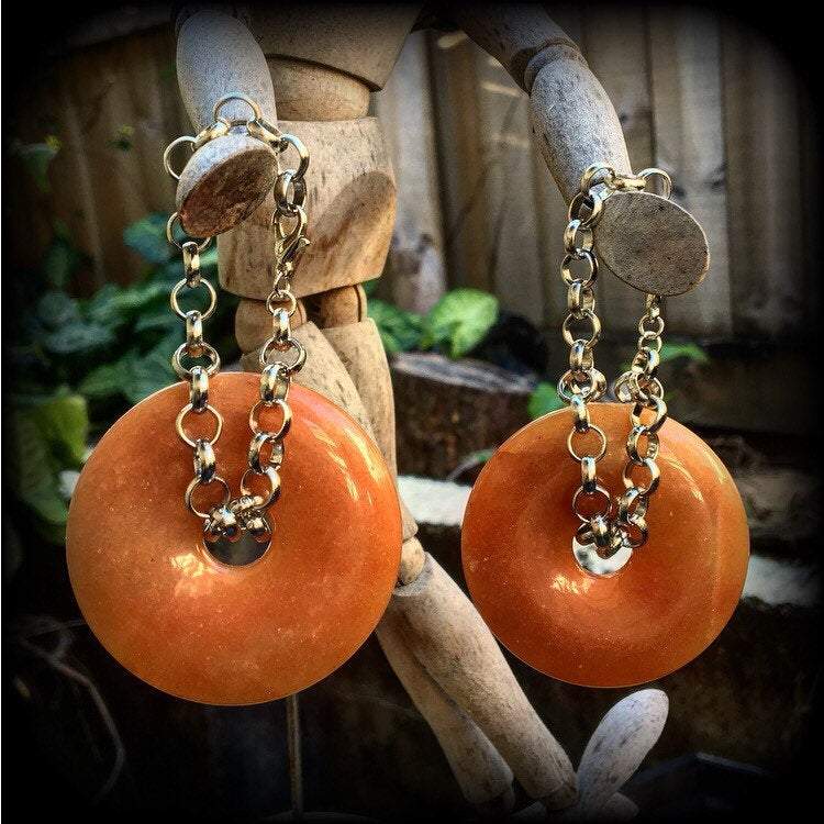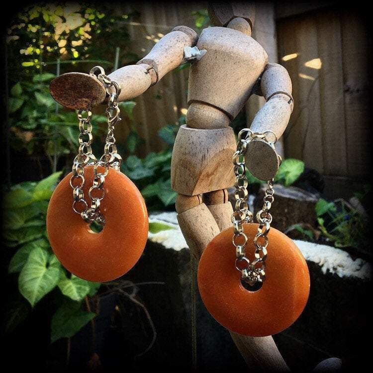 This pair have been made with chunky antique silver chain and lobster clasp, to be worn specifically through earlets in stretched lobes from 10mm/00 gauge.