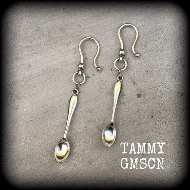 Made on large antique silver shephard hooks and measuring just over 7cms, these are super cute and super light weight, suitable to be worn in stretched ears in silicone earlets from 2 gauge/6mm and larger.