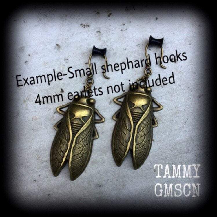 This pair have been made on large antique bronze shephard hooks, to be worn through stretched ears with silicone earlets from 6mm/2gauge. Please choose from the first 3 options in the drop down menu if you would like these made for pierced ears.