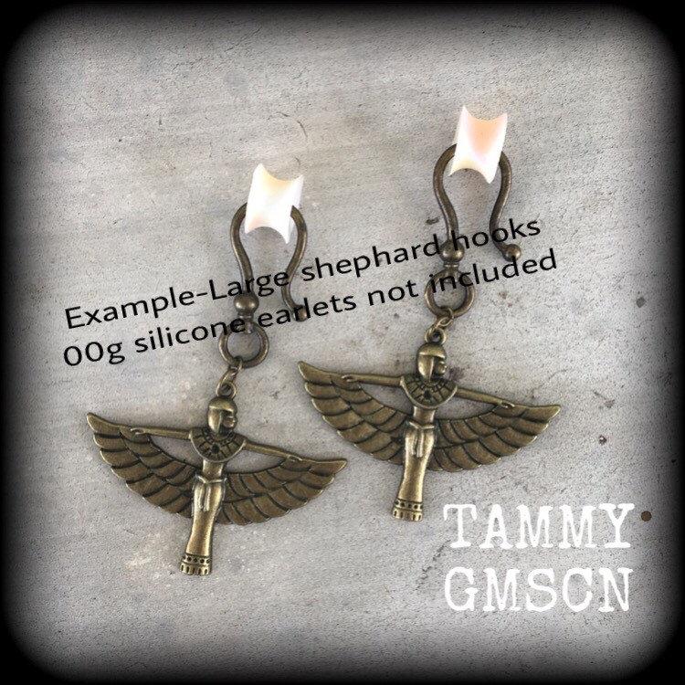2 gauge ear weights Egyptian Isis Horus Bird earrings 6mm ear hangers 8 gauge tunnel dangles 0 gauge plug dangles Gauged earrings 8 gauge
