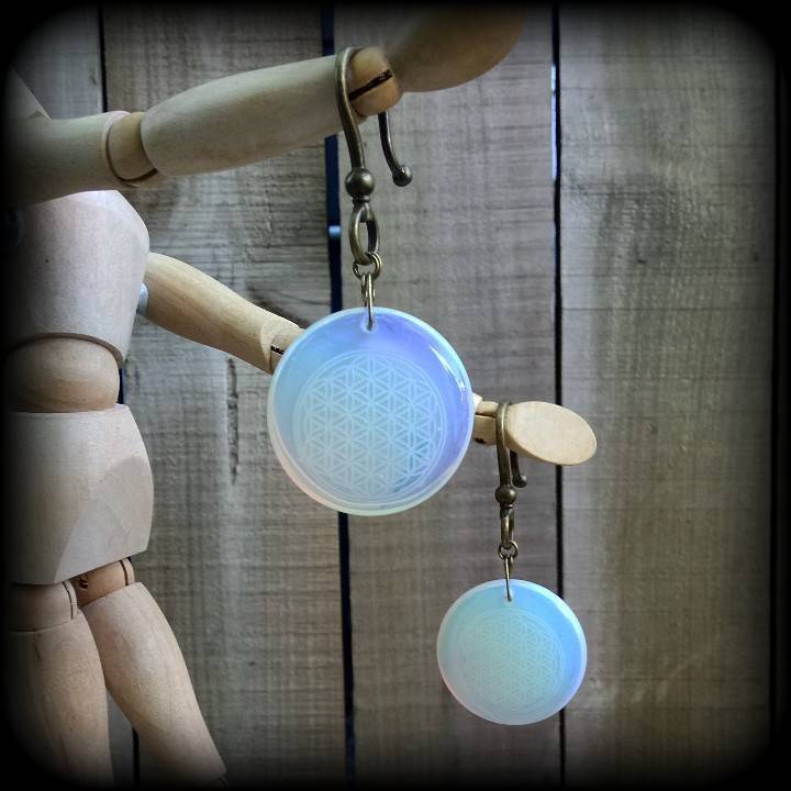 2 gauge ear weights Opalite Ear hangers Flower of life Gauged earrings Hanging Gauges 0 gauge plug dangles 4 gauge tunnel dangles 0g 2g 4g
