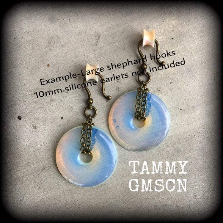 *I recommend shephard hooks be worn through silicone earlets in stretched lobes, they sit snug and look great, while chain and clasps are suitable to be worn through metal tunnels or silicone earlets.
