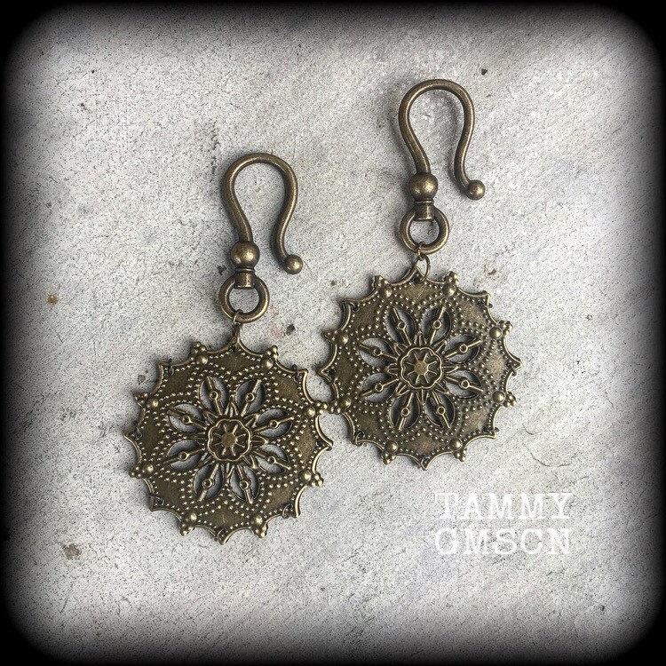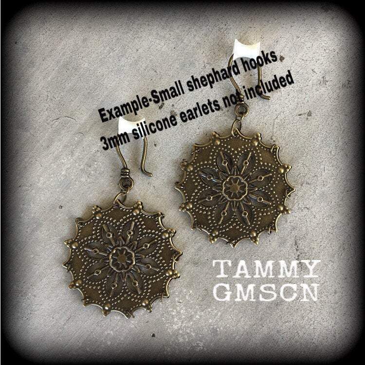 From my Geometrica range, these antique bronze mandala ear hangers measure just under 7cms from top to bottom.