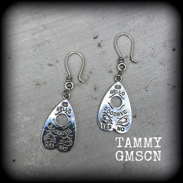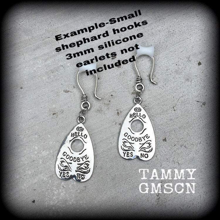 3mm 8 gauge Ouija plug dangle Planchette Tunnel dangles 2 gauge ear hangers Esoteric jewelry 4mm gauges 8 gauge hangers 8mm Gauged earrings