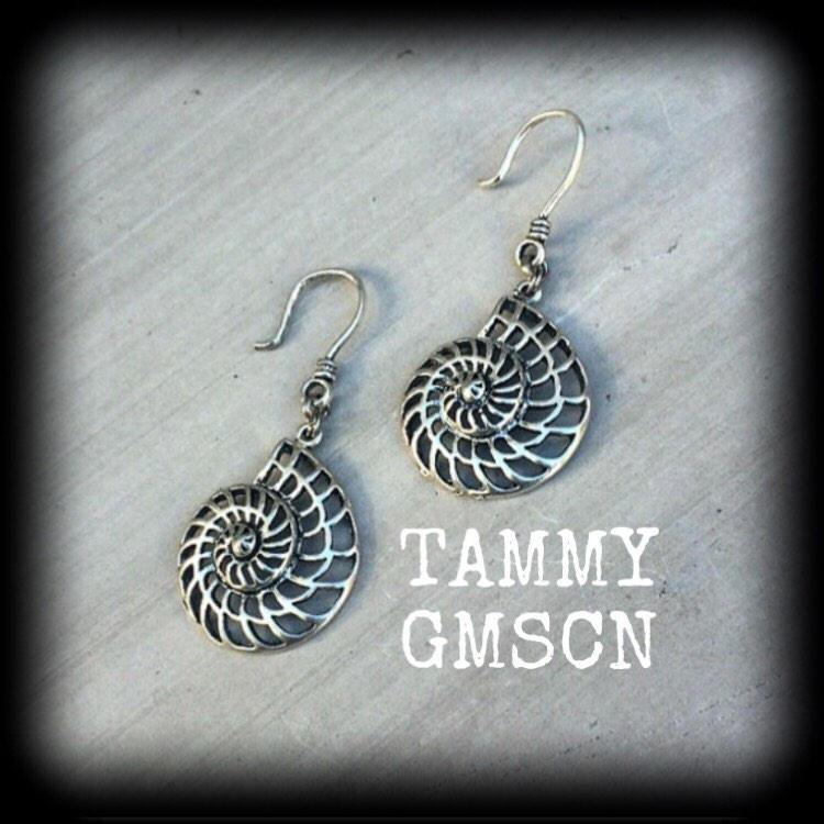 These Fibonacci ear hangers are super light weight, measuring in at just under 7cms from tip to tip, and have been made with a small antique silver shepherd hook, to be worn through silicone earlets in stretched ears from 3mm (8 gauge) and larger.