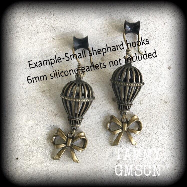 3mm gauges Hot air balloon Ear hangers 4mm Plug dangles 6mm Tunnel dangles 8mm Hanging gauges Gauged earrings Steam Punk Hanging gauges 0g