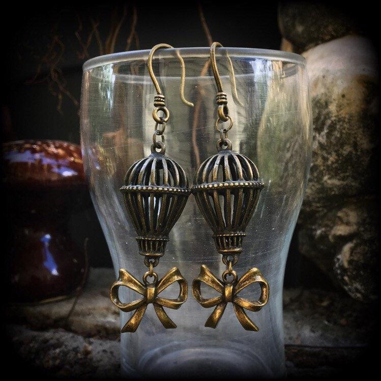 These cute little Vintage Antique Bronze Hot Air Balloon ear hangers have a super cute antique bronze bow charm measure 7cms and feature a small antique bronze shephard hook, to be worn through stretched lobed with silicone earlets from 3mm/8 gauge.