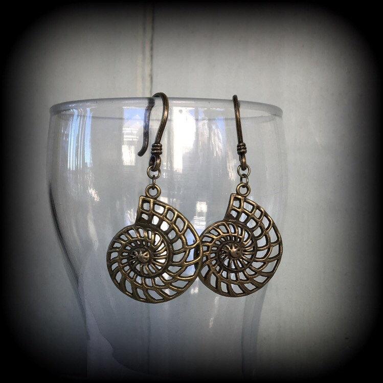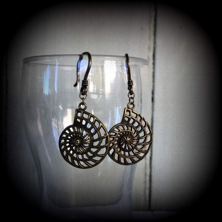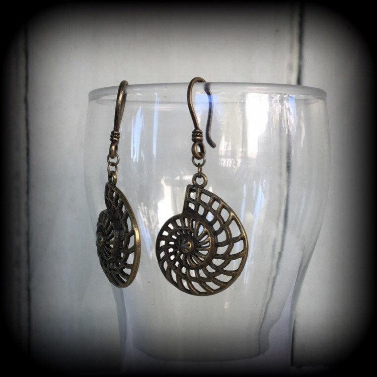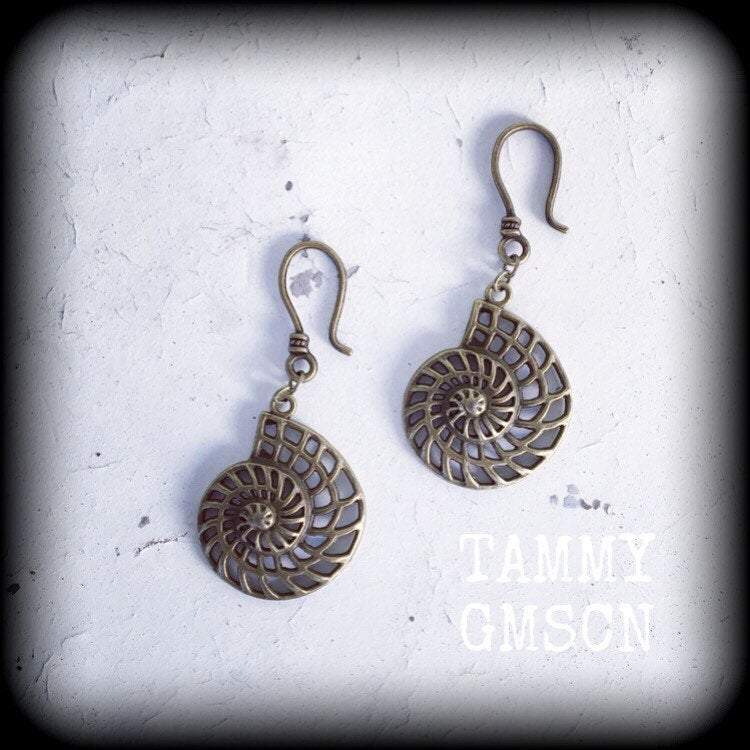 3mm nautilus earrings 8 gauge 4 gauge 2 gauge 0 gauge Fibonacci tunnel dangles 6mm plug dangles Gauged earrings Hanging gauges Steampunk
