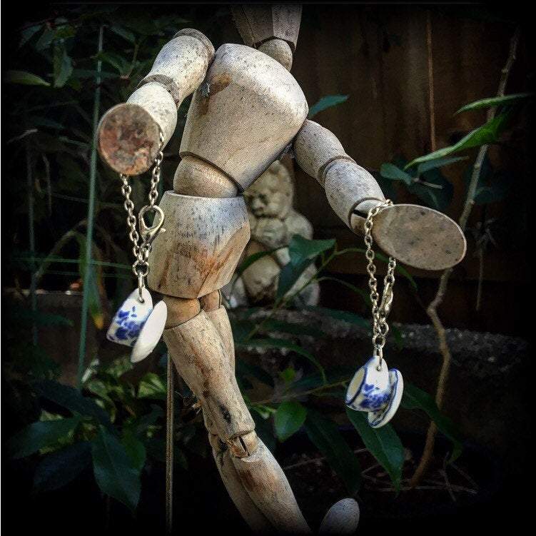 These cute as a button "Devonshire Tea' tea cup and saucer earrings are inspired by Alice in Wonderland!
