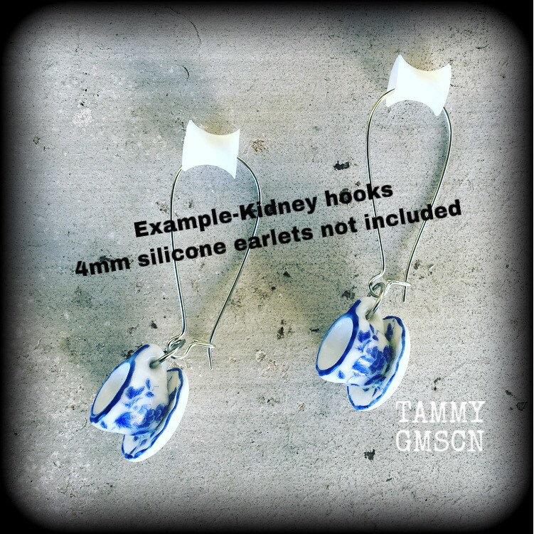 *I recommend shephard hooks be worn through silicone earlets in stretched lobes, they sit snug and look great, while chain and clasps are suitable to be worn through metal tunnels.
