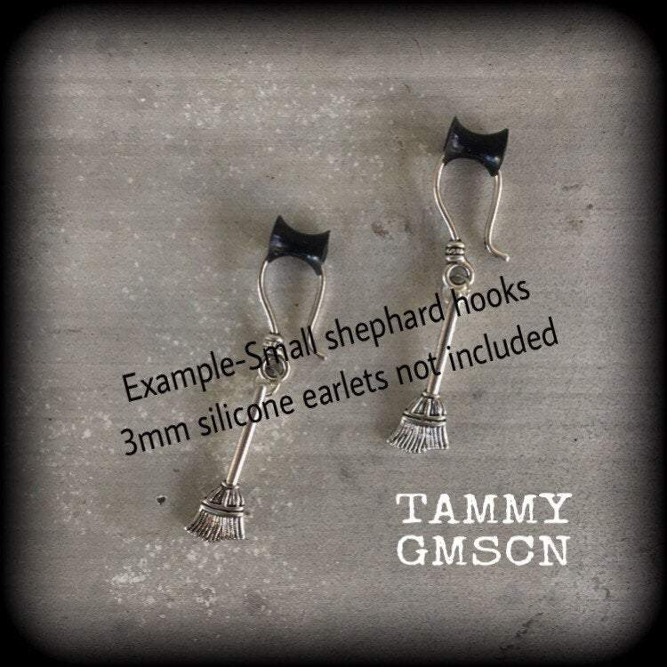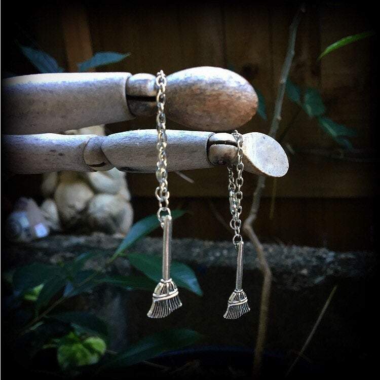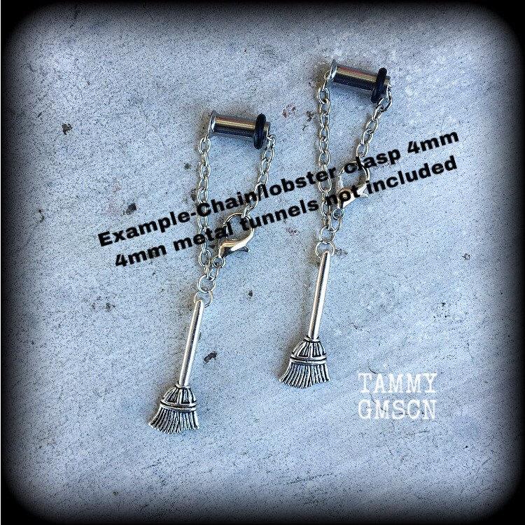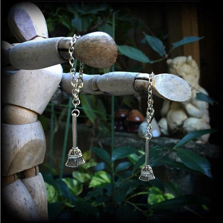 The antique silver 'Witches Besom' tunnel dangles are light weight and nice and dangly, measuring just on 6cms, and made on antique silver chain and lobster clasps to be worn through stretched lobes from 4mm and larger.