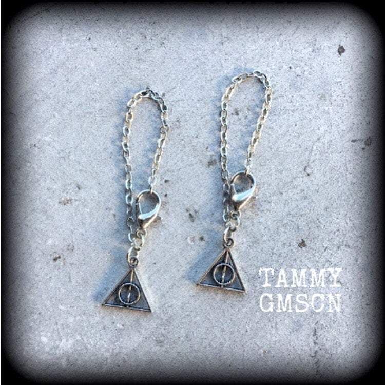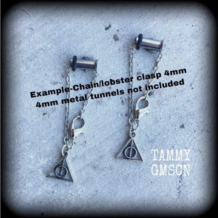 Made with antique silver chain and lobster clasp 4mm, these are made to fit through tunnels in stretched lobes from 4mm/6 gauge.