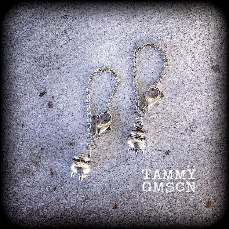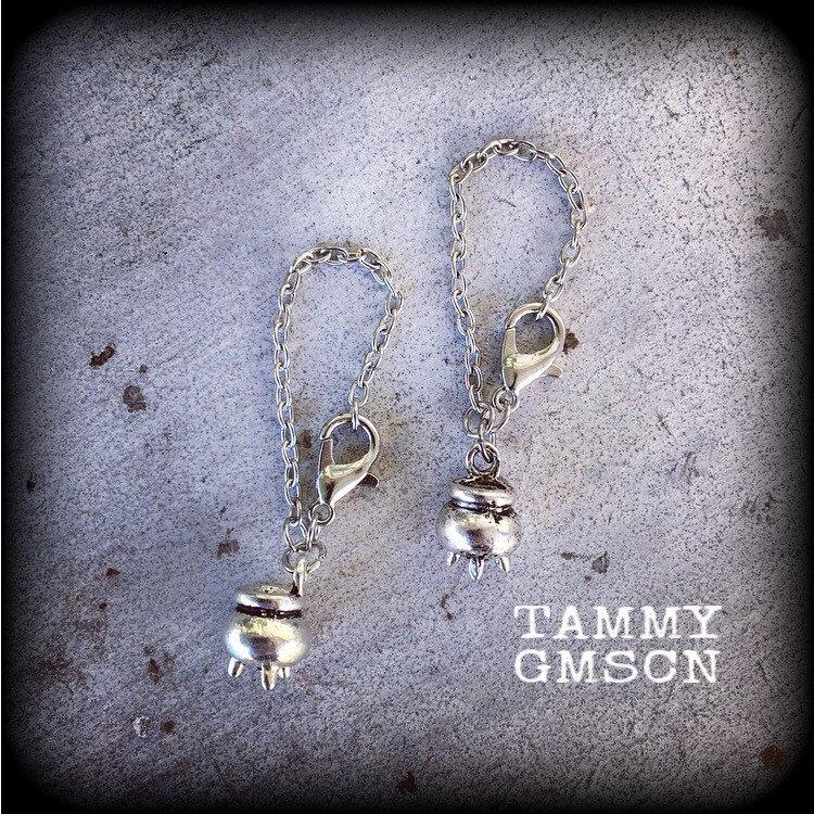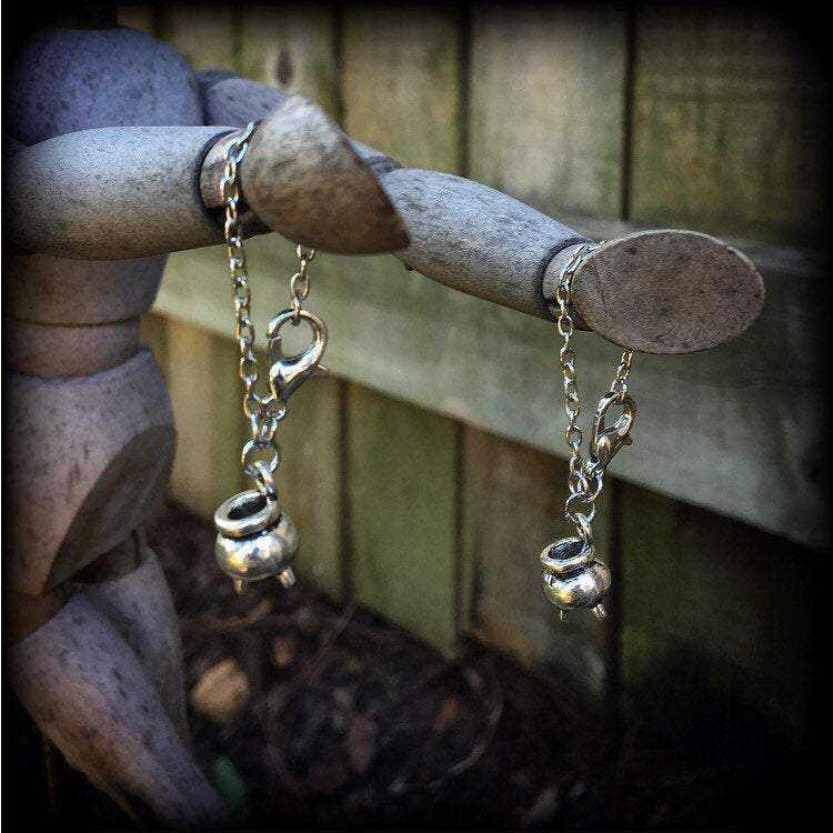 The antique silver 'Witches brew' earrings are light weight and nice and dangly, measuring just on 5cms, and made on antique silver lobster clasp and chain to be worn through stretched lobes with silicone earlets 4mm and larger...