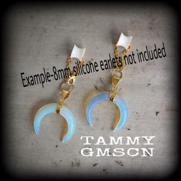 6mm opalite ear hangers 2 gauge tunnel dangles 4mm ear weights 6 gauge plug earrings Plug dangles Gauged earrings 4 gauge 5mm tunnel dangles
