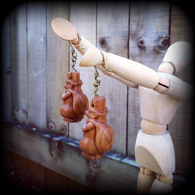 This pair of gorgeous carved peach wood Hobo Mouse ear weights feature a quirky carved mouse wearing a hat and carrying a hobo swag. These are nice and lightweight, weighing only 10 grams each and measuring just on 8cms from tip to tip, making them perfect for pierced ears, and light weight ear weights.