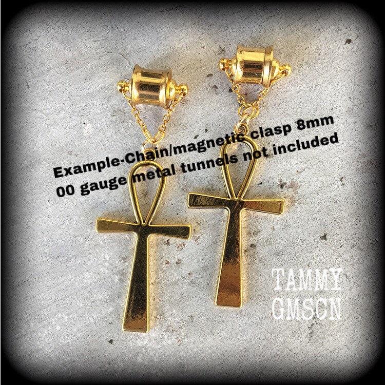 Ankh earrings Egyptian earrings Evil eye earrings Eye of Ra earrings Esoteric earrings 10 gauge tunnel earrings 3mm plug dangles 4mm gauges