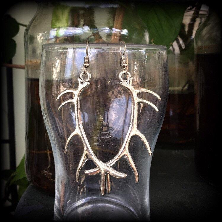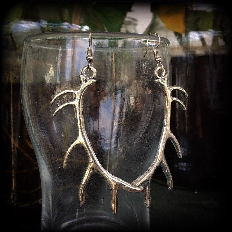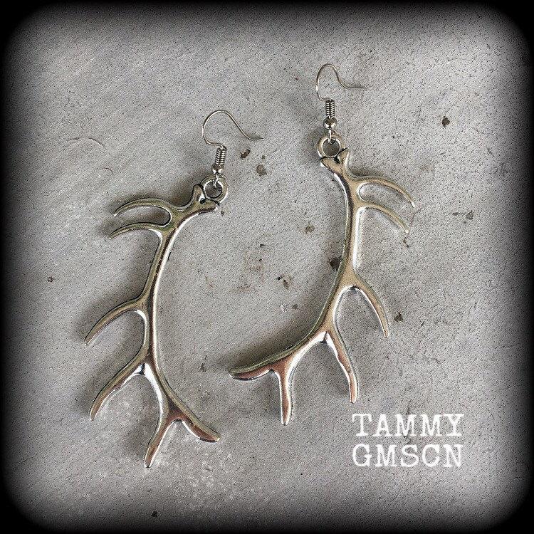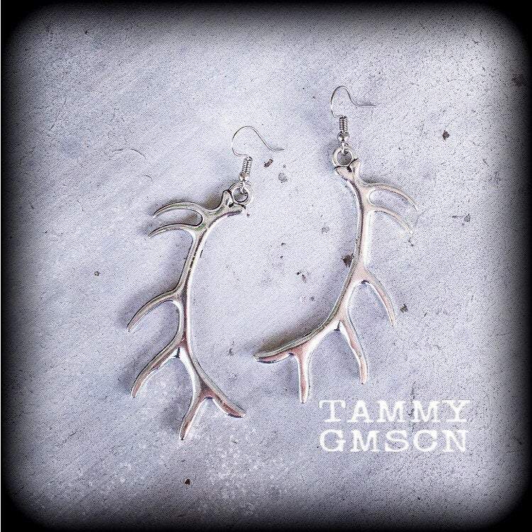 These earrings are nice and light weight featuring antique silver caribou antlers, measuring just on 11cms from tip to tip and made on antique silver french hooks, for pierced ears.