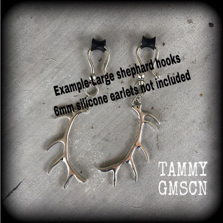*I recommend shephard hooks be worn through silicone earlets in stretched lobes, they sit snug and look great, while chain and clasps are suitable to be worn through metal tunnels or silicone earlets.