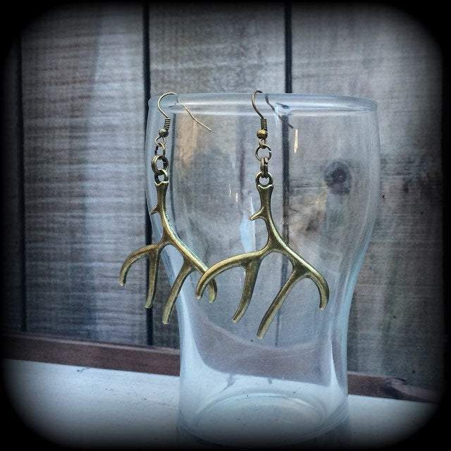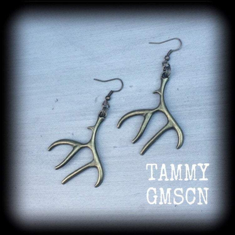 Antler earrings Horn earrings Sagittarius jewelry Nature jewelry Deer earrings Goddess earrings Tunnel earrings Pagan jewlery Plug dangles