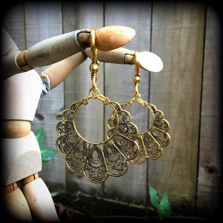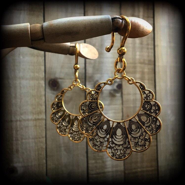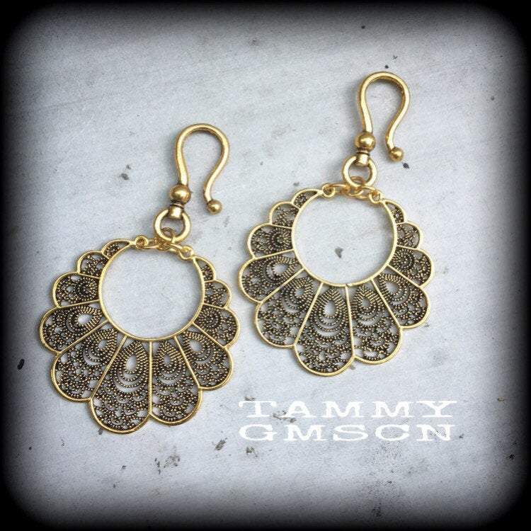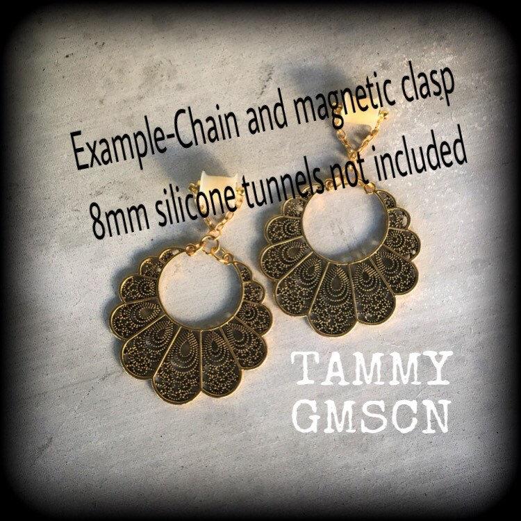 Artemis 0 gauge ear weights Boho 10mm ear hangers Tunnel dangles Shield Plug earrings Gauged earrings Stretched ears Tunnel earrings 2g 4g