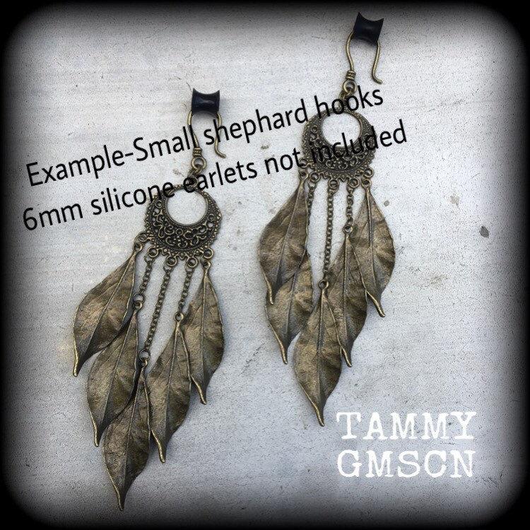 *I recommend shephard hooks be worn through silicone earlets in stretched lobes, they sit snug and look great, while chain and clasps are suitable to be worn through metal tunnels or silicone earlets.