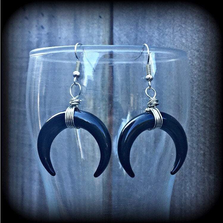 These acrylic 'Double horn' earrings have been made on antique silver french hooks, for pierced ears.