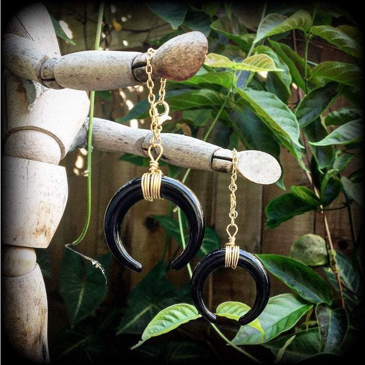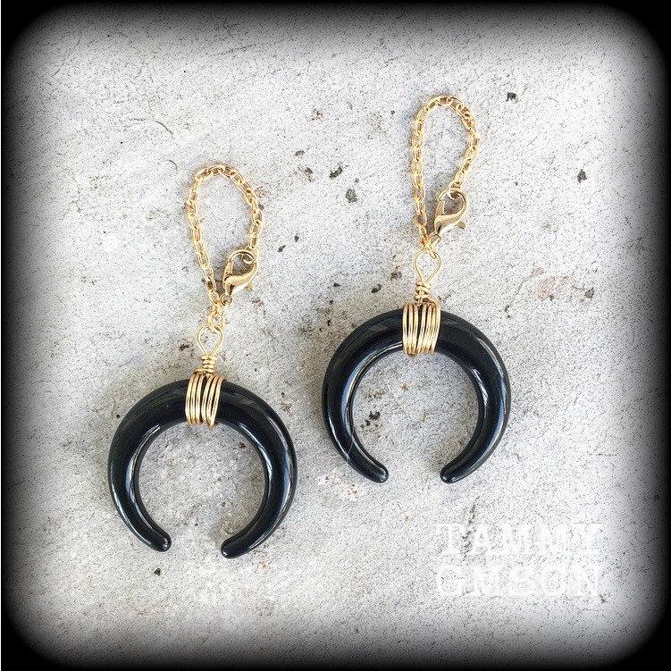 Artemis tunnel earrings Double Horn plug earrings 8mm tunnel dangles 6mm plug dangles Gauged earrings Ear hangers Light weight ear weights