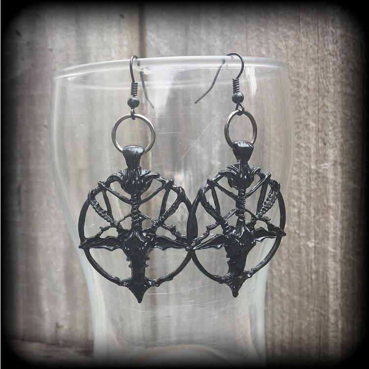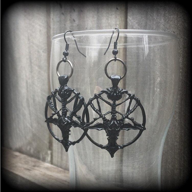 The 'Baphomet' earrings are nice and dangly but not too big, weighing only a few grams each, and made on french hooks to be worn in pierced ears.
