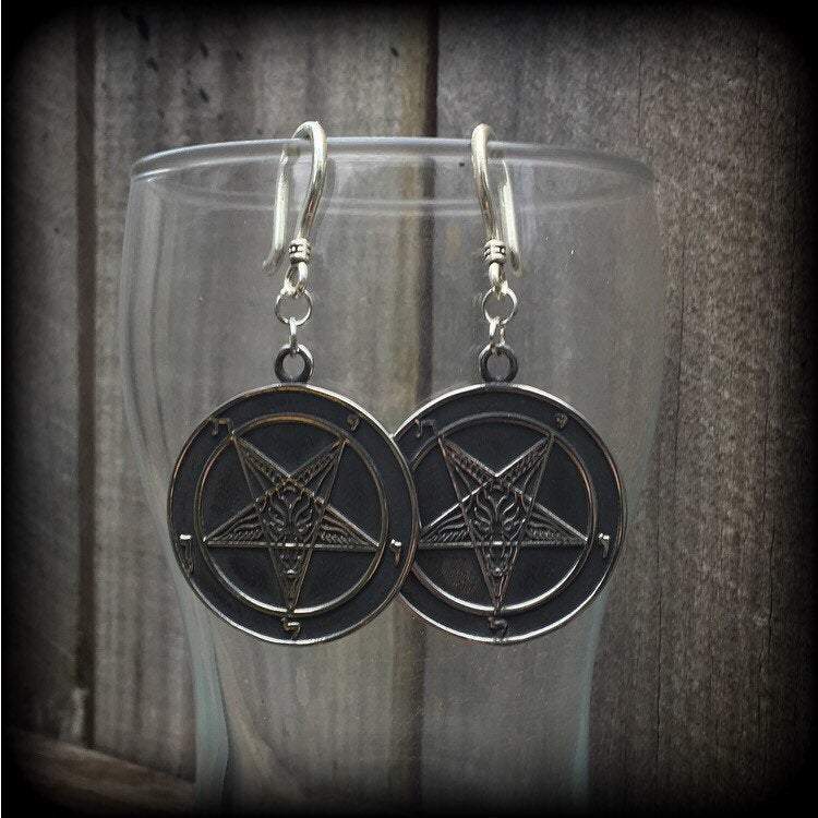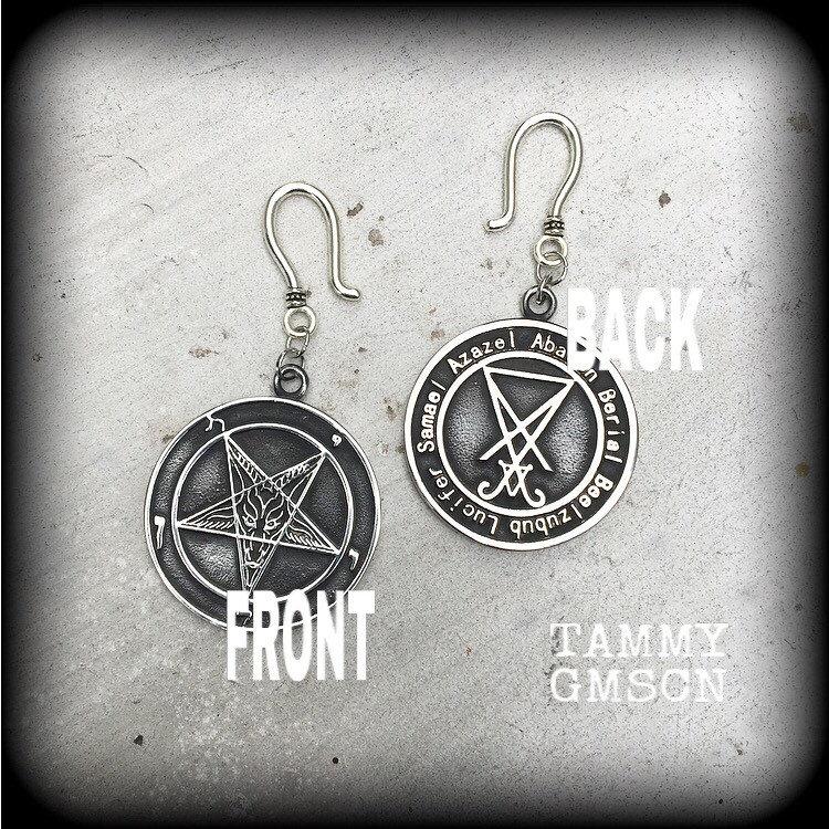As shown, these earrings are double sides. If you would like the Sigil of Lucifer side at the front instead of the Baphomet please just add it in the 'notes to seller' when you make your purchase.