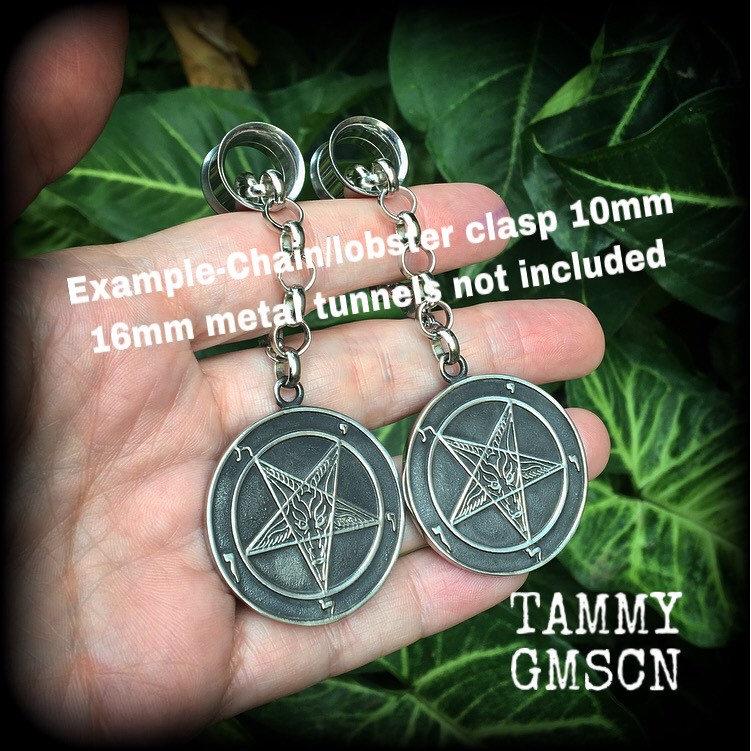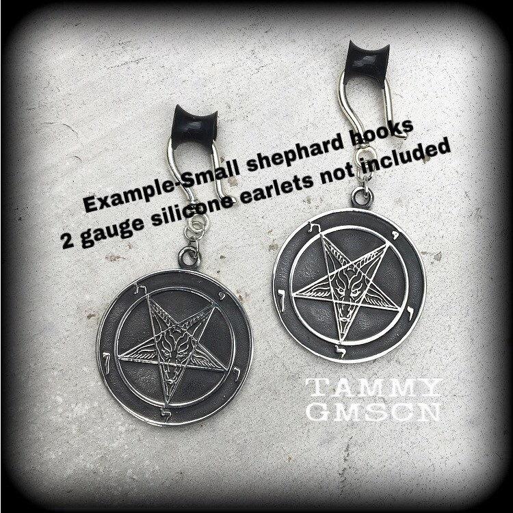 These antique silver 'Baphomet' earrings are light weight (15 grams a piece) and nice and dangly, measuring just on 7cms, and made on small antique silver shephards hooks to be worn through silicone earlets in stretched lobes from 3mm.