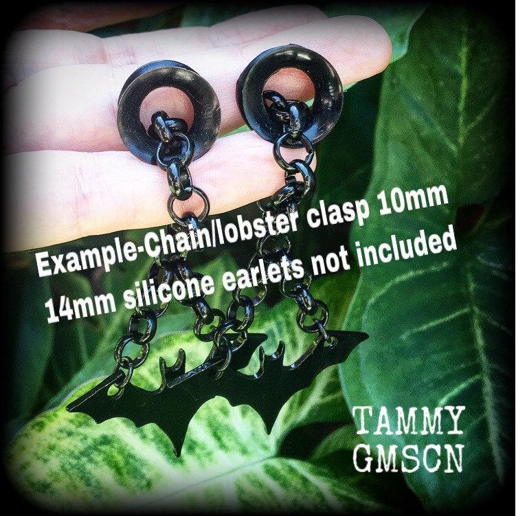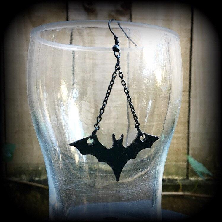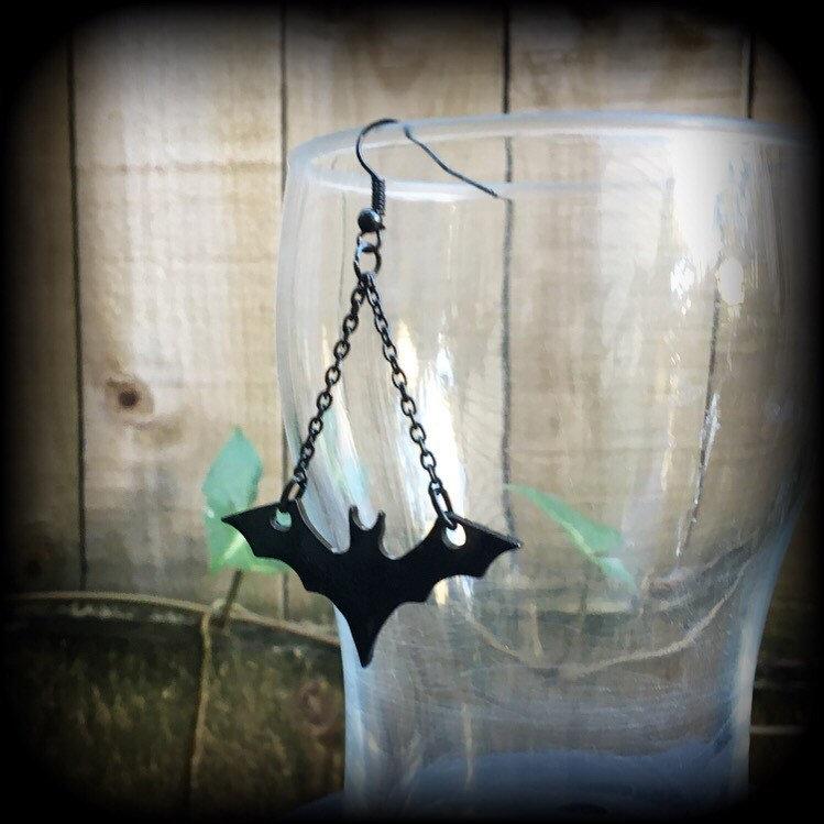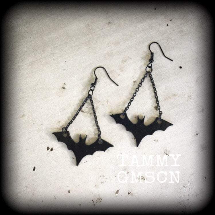 Bat earrings Dangle earrings Halloween earrings Gothic earrings Animal earrings Pierced ears Stretched lobes 8g tunnel dangles Plug earring