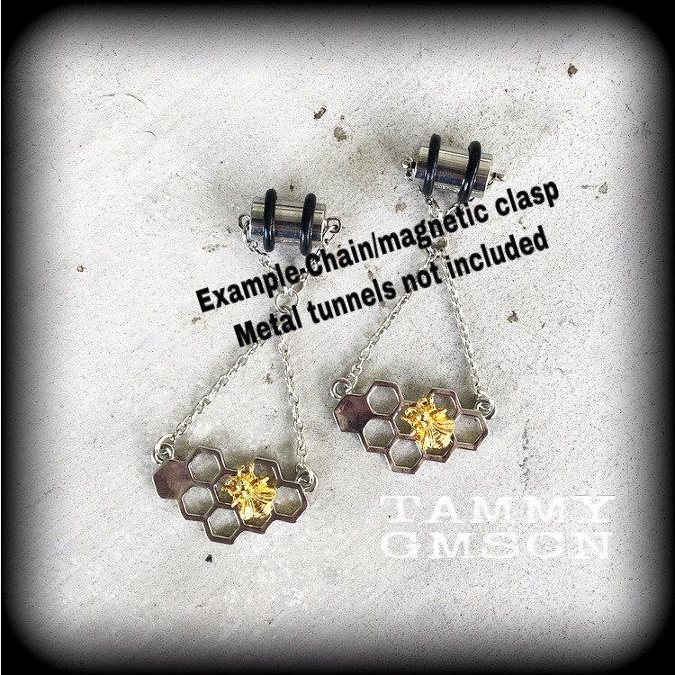 *I recommend shephard hooks be worn through silicone earlets in stretched lobes, they sit snug and look great, while chain and clasps are suitable to be worn through metal tunnels or silicone earlets.