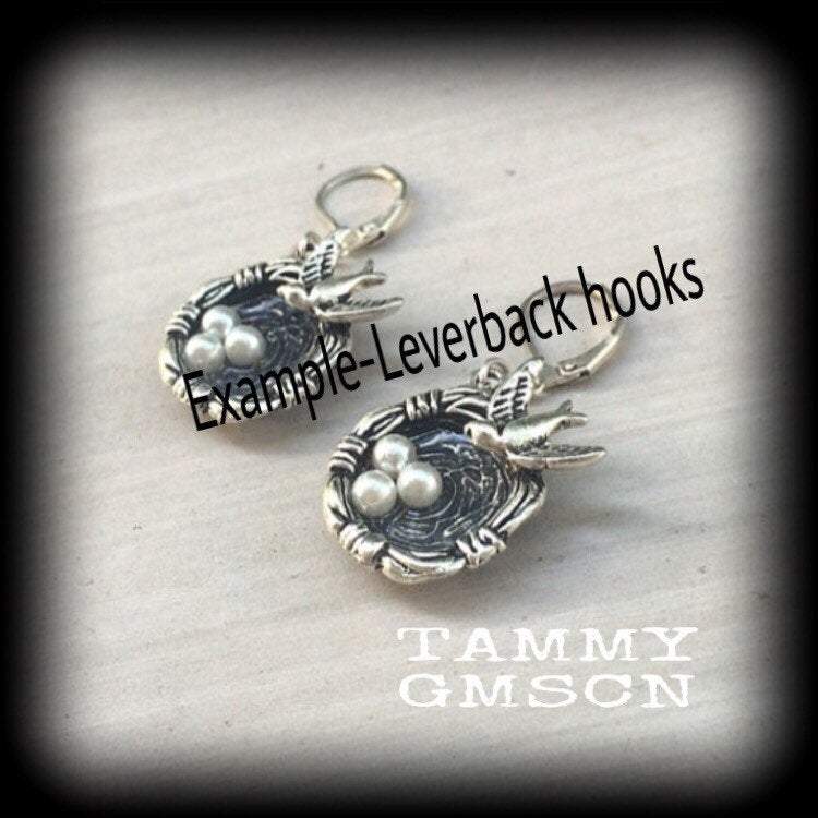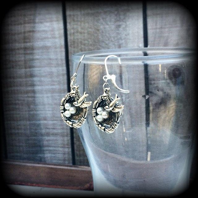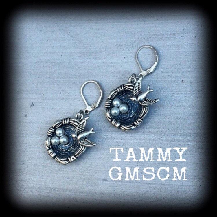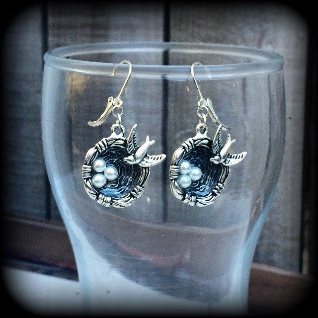 Bird earrings, Birds nest, Cute earrings, Swallow earrings, Tattoo earrings, Blue bird earrings, Kidney hooks, Pierced ears, Gifts for her