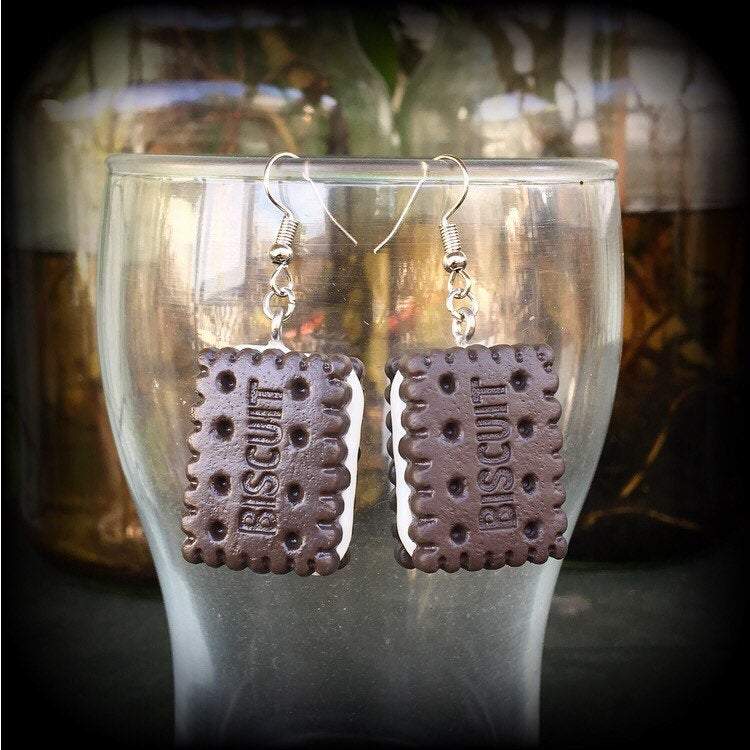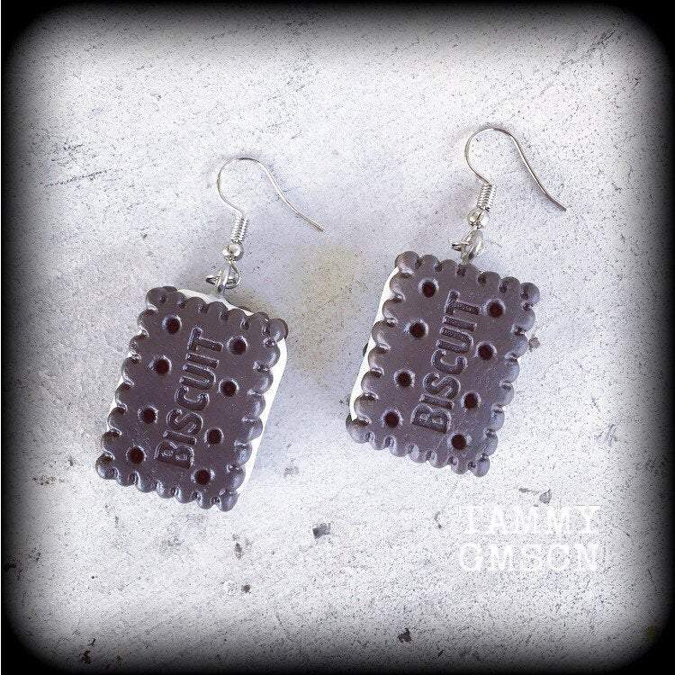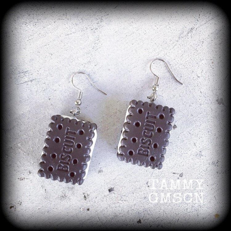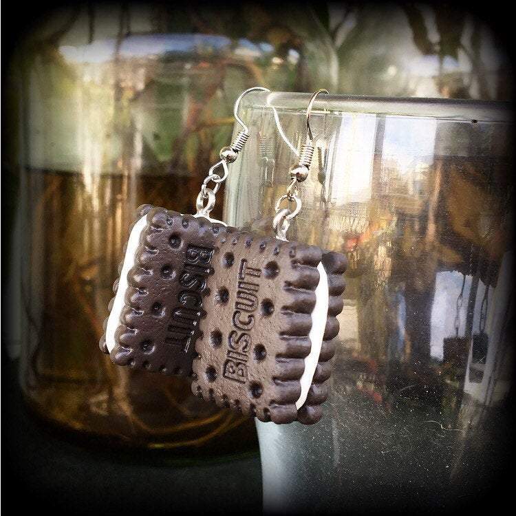 This pair of yummy 'Cream Biscuit' earrings measures just over 5 cms and features antique silver french hooks, to be worn in pierced ears.