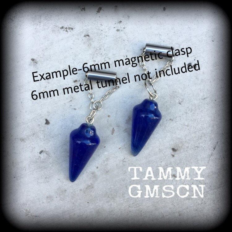 Blue cherry quartz ear hangers Gemstone ear weights Goddess Boho Wicca Tunnel earrings Plug earrings Hanging gauges Tunnel dangles 2g 4g 6g