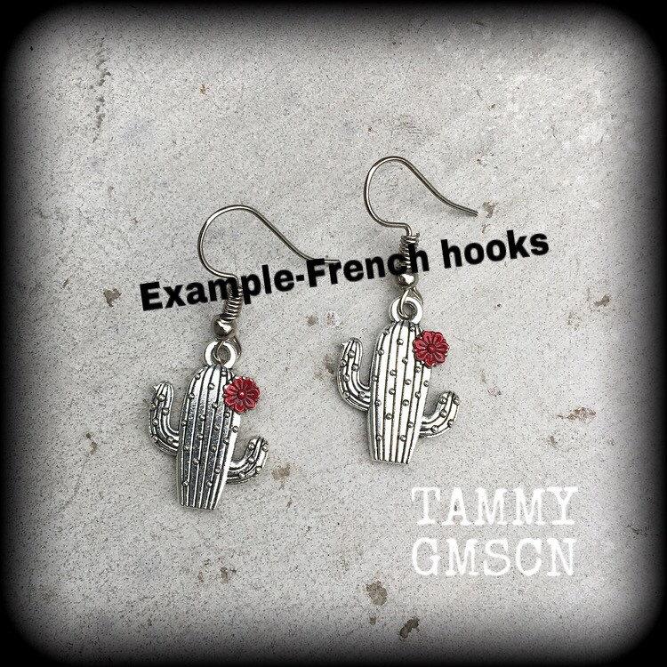 These awesome cactus ear hangers are from the Wanderlust range of earrings, featuring all things cute and quirky. Measuring just on 6cms from top to bottom these ear hangers feature a classic prickly cactus with a quirky little red flower.