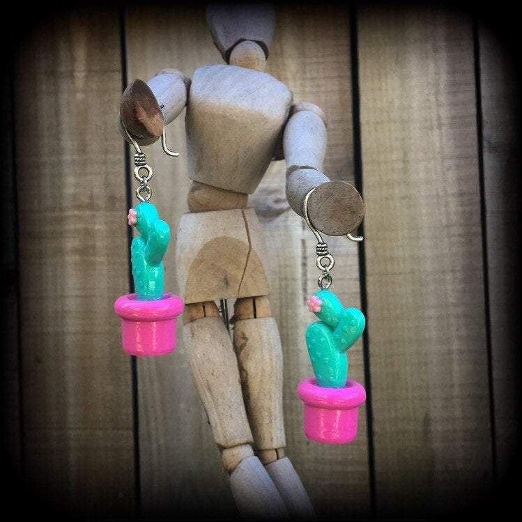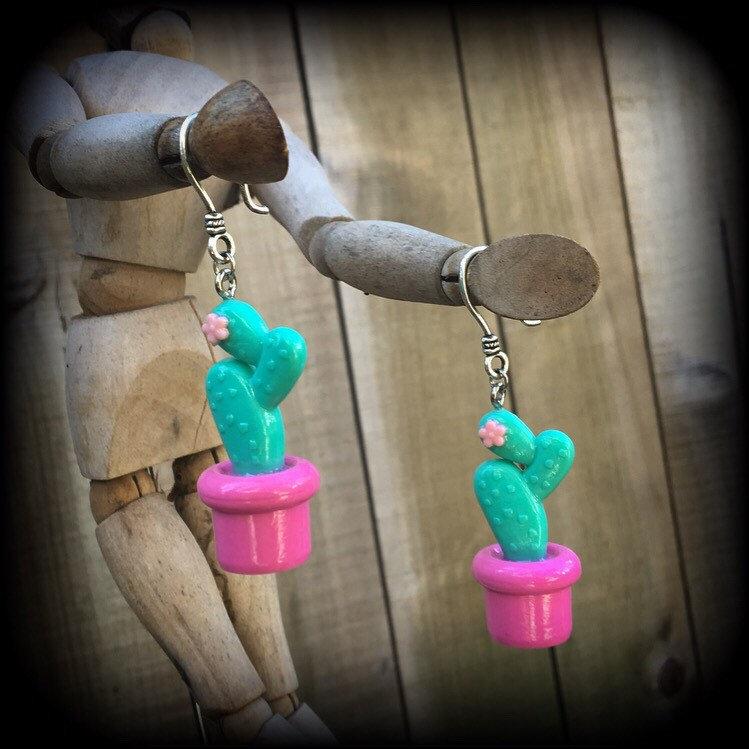 Cactus earrings Succulent earrings Plant jewelry Vegan earrings Plug earrings Pierced ears Stretched ears Gauged earrings Tunnel dangles 2g