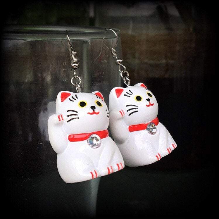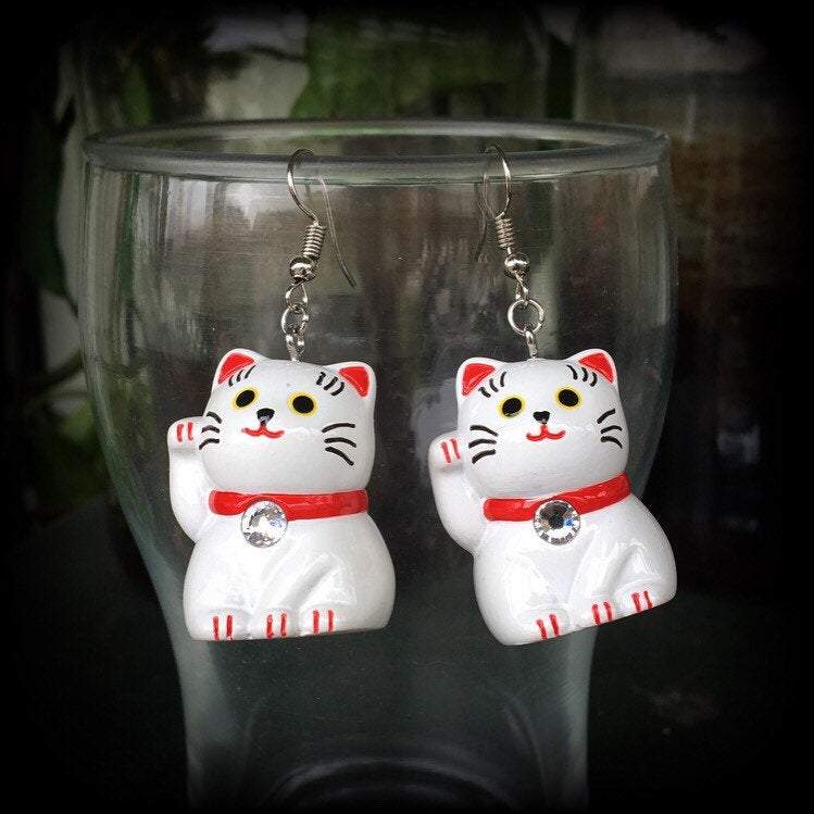 These are the 'Beckoning Cat' earrings, made from gorgeous ceramic charms.