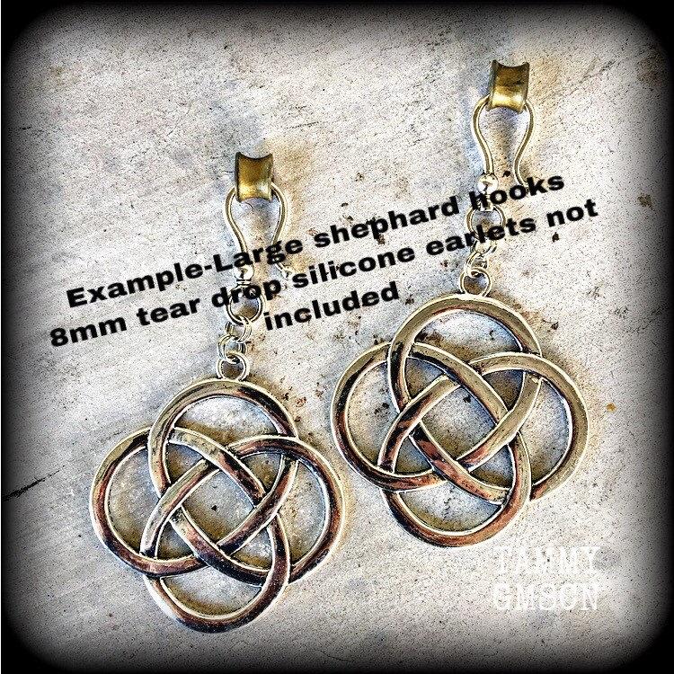 *I recommend shephard hooks be worn through silicone earlets in stretched lobes, they sit snug and look great, while chain and clasps are suitable to be worn through metal tunnels or silicone earlets.