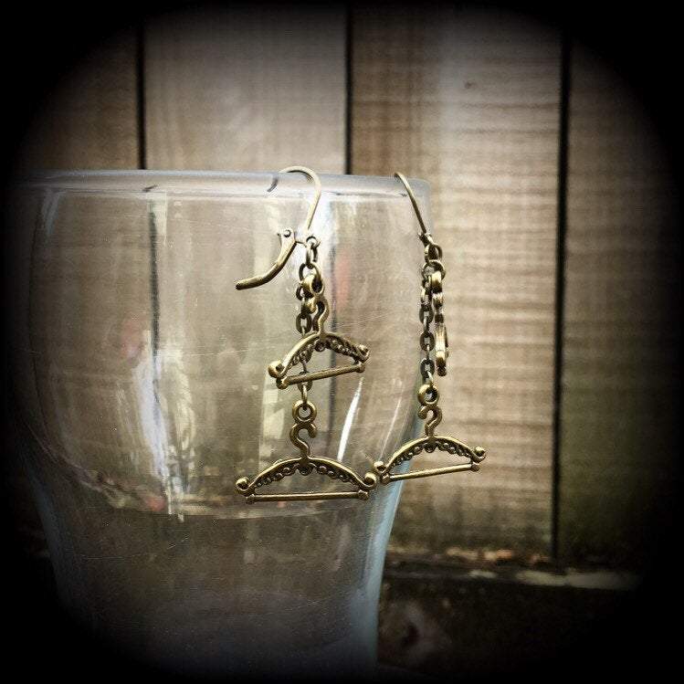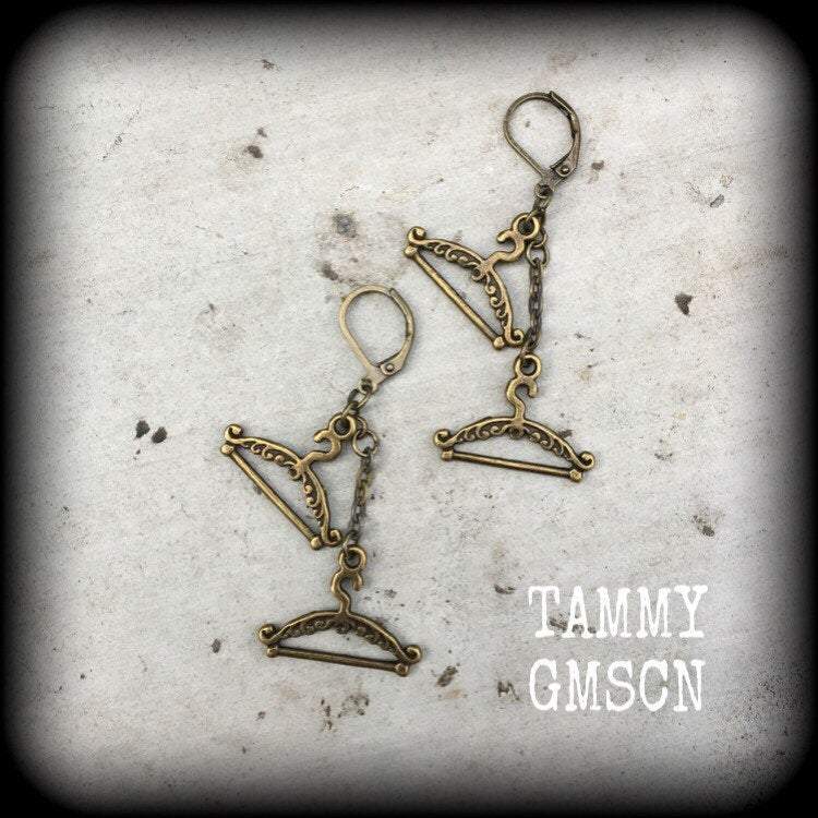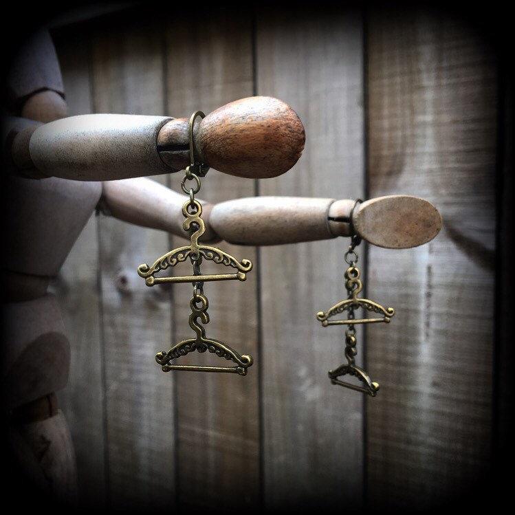 Coat Hanger earrings Cute earrings Kitsch earrings Retro earrings Kawaii earrings Boho earrings Hipster earrings Pierced ears Gauges 2g 4g