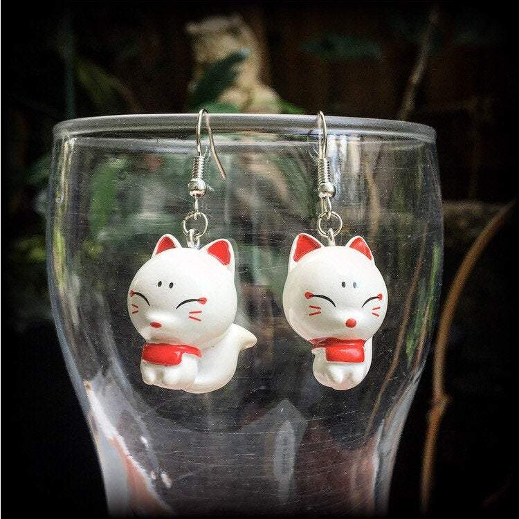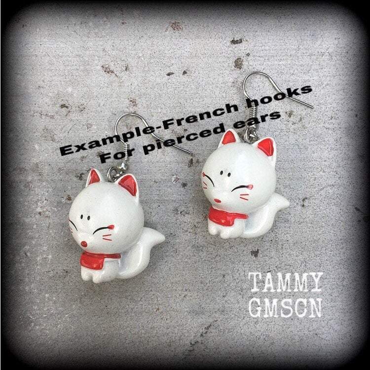 Measuring just on 5cms from tip to tip, these Japanese Kitsune earrings are made on french hooks for pierced ears.