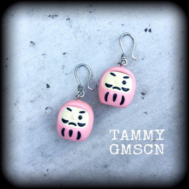 These Japanese 'Pink Daruma' ear hangers are from my Kawaii range, cute and quirky jewellery inspired by all things Japanese. Pink Darumas bring love and romance in Japanese folklore.