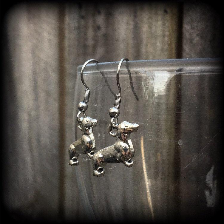 Daschund earrings Dog earrings Sausage dog earrings Doggo Pupper earrings Tunnel earrings 3mm Plug earrings Tunnel dangles 8g Plug dangles