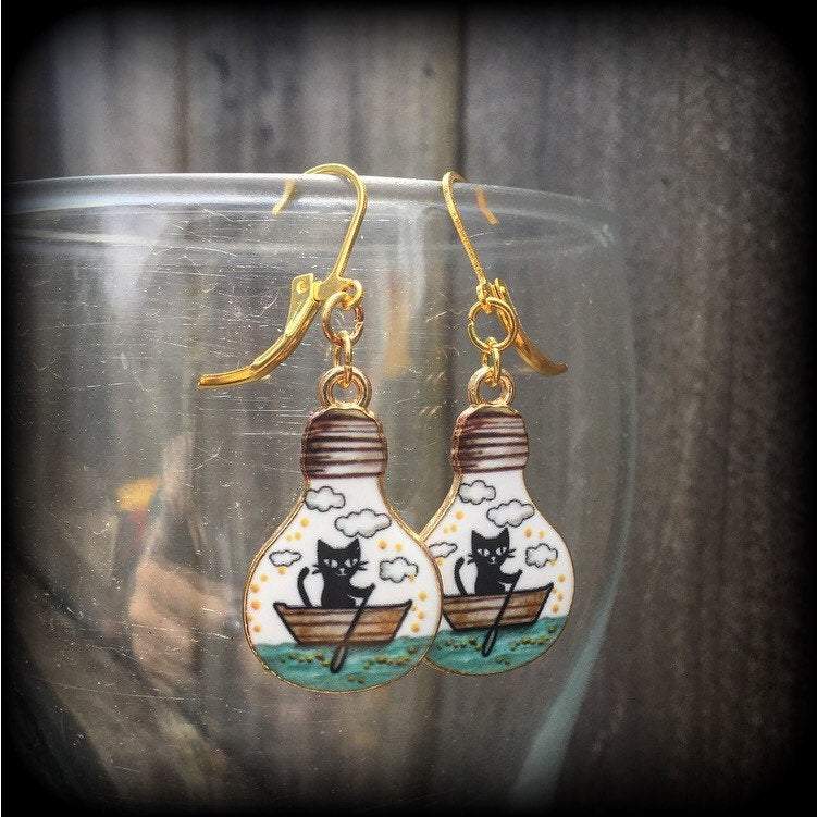 These earrings are cute as a button and quirky as! Measuring just on 4cms, these have been made on antique gold leverback hooks to be worn through pierced ears or stretched lobes with silicone earlets.