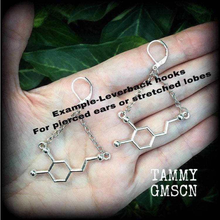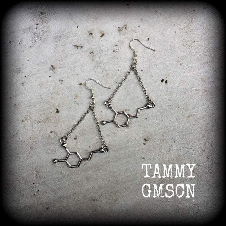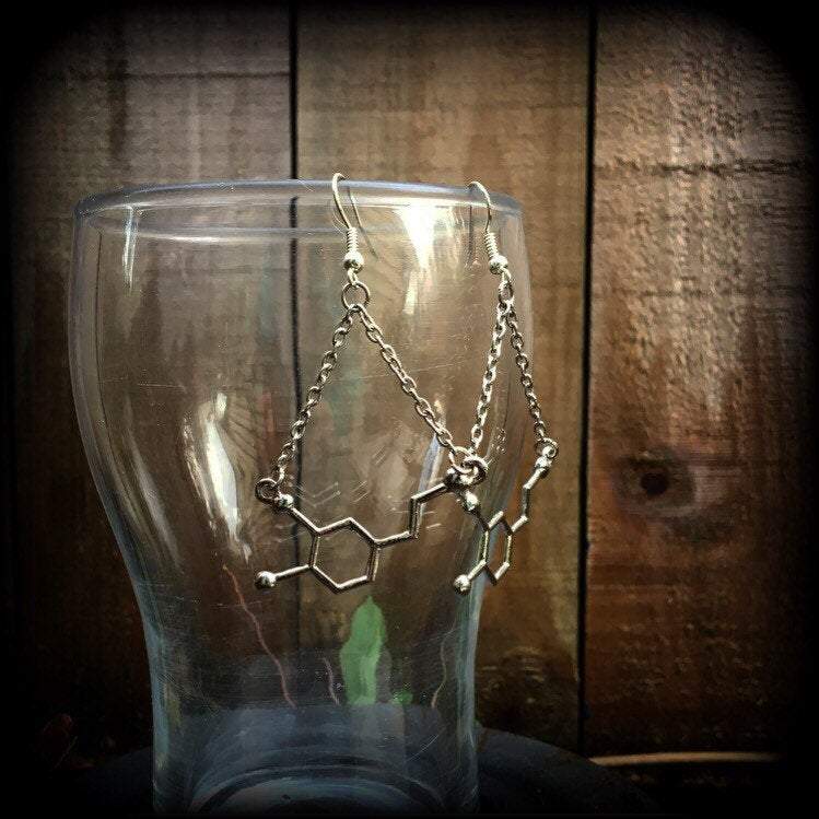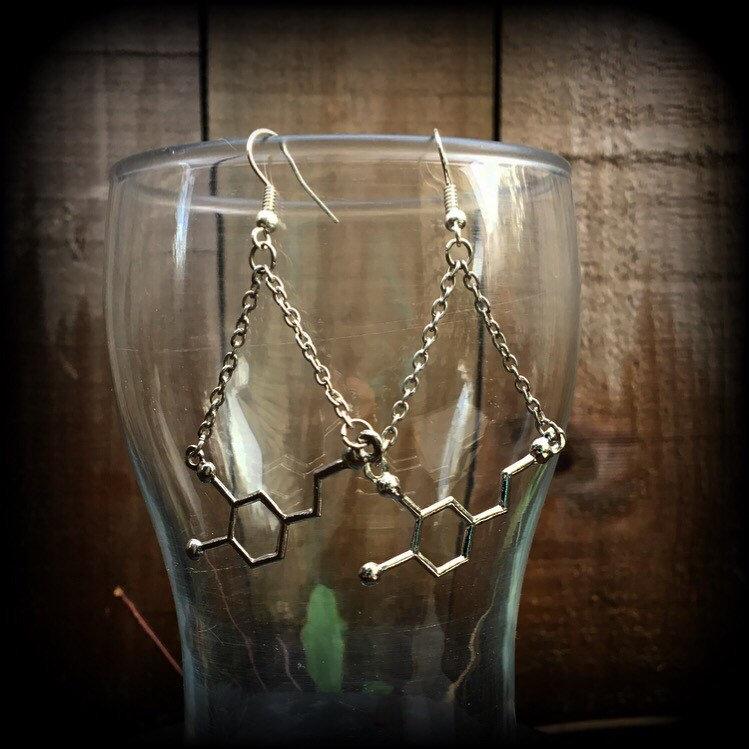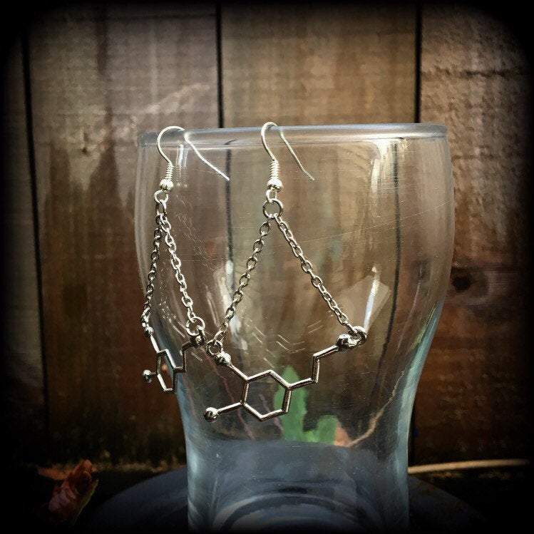 These are the cute 'Dopamine Molecule' earrings from the 'Science Faction' range, featuring all things Science fiction/fantasy and fact!