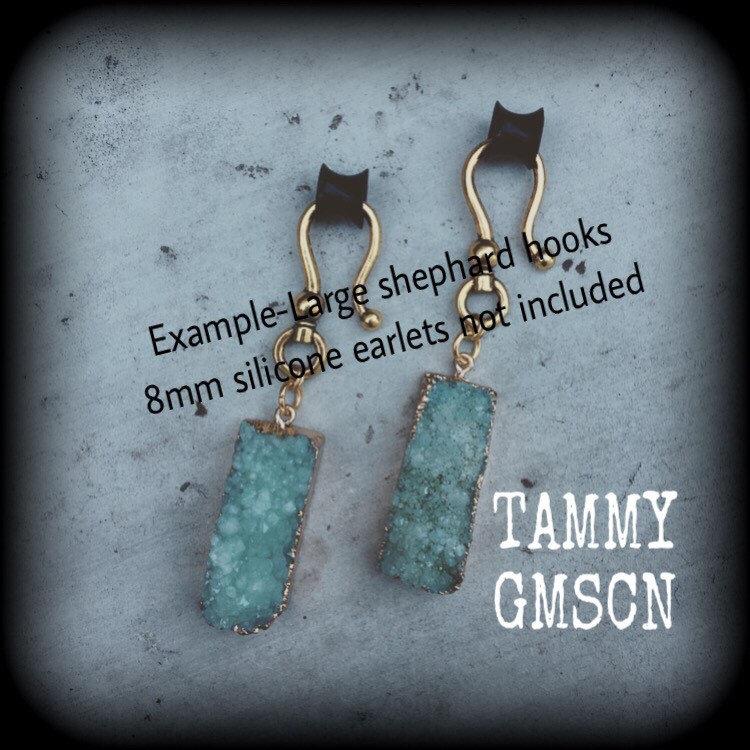 *I recommend shephard hooks be worn through silicone earlets in stretched lobes, they sit snug and look great, while chain and clasps are suitable to be worn through metal tunnels or silicone earlets.