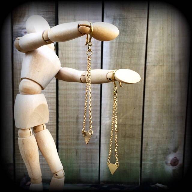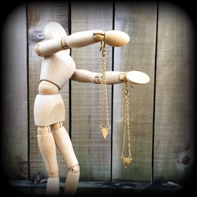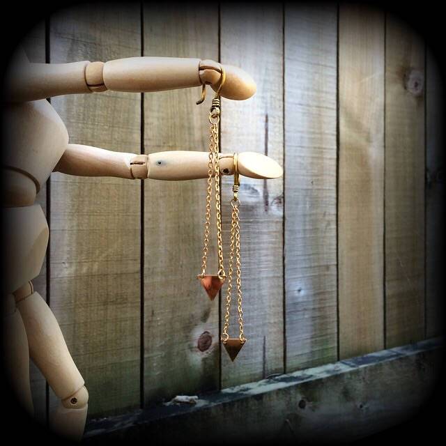 These earrings are nice and dangly, measuring in at just over 10cms from tip to tip, and have been made with small boho gold shephards hooks, to be worn through stretched lobes with silicone earlets.